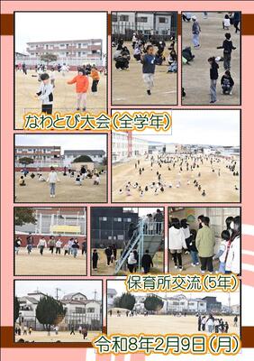 昨日は、大阪府に雪が降ったとても寒い朝でした。でも、北小の子どもたちは元気いっぱいです。2時間目には運動場でなわとび大会、3時間目からは5年生と第6保育所の子どもたちが交流をしました。