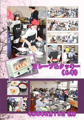6年生が楽しそうに調理実習をしていました。これまでの経験を生かして、豆乳と米粉のクレープを焼いて、ヘルシー材料クッキーも作りました。卒業まであとわずかです。