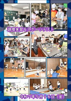 5年生がゆで野菜サラダを作る調理実習をしていました。包丁の安全な使い方やちょうど良いゆで方、手作りドレッシングの作り方を学習しました。3~6年生は午前と午後に分かれてスポーツテストを行いました。自分の記録から今後のめあてをつくっていきます。