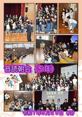 今日の朝は、5年生による音読朝会でした。昔懐かしい、ドリフターズのリズムに合わせて早口言葉を披露してくれました。16種類もあったので、一緒に言おうと思いましたが、全然ついていけませんでした。ノリノリでリードしてくれた5年生ありがとう!
