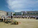 今日の1時間目は、全校児童による運動会練習でした。大玉送りリレーを実際に全校児童で試してみました。司会進行やラジオ体操など6年生が良い手本になっています。各学年の練習もずいぶん進んできています。3・4年生が合同で万博ダンスを踊っていました。本番が楽しみです。